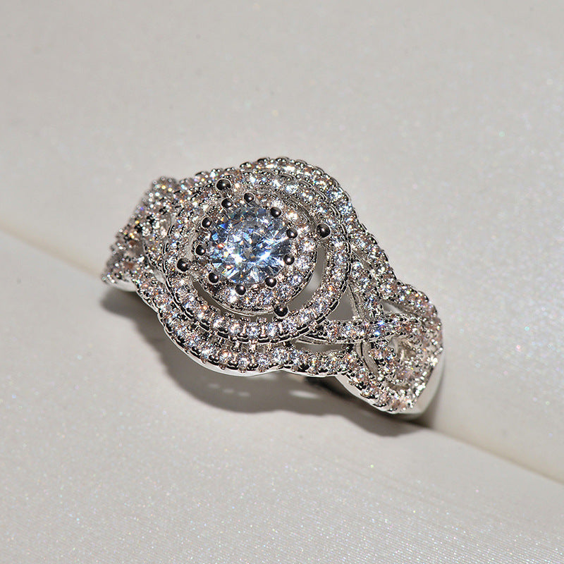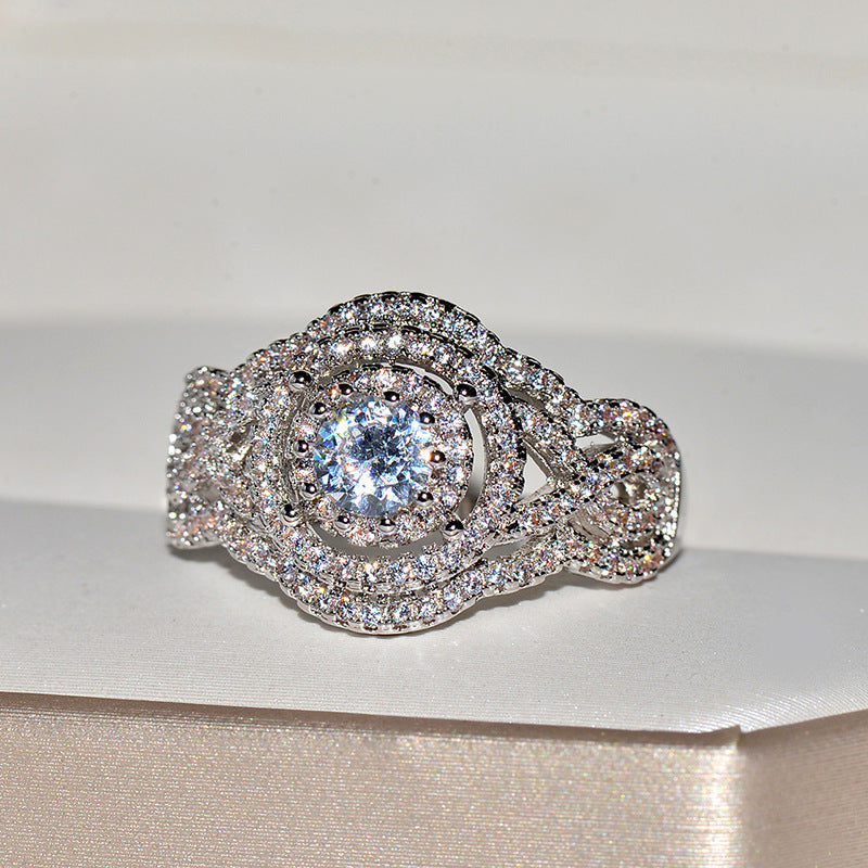 Women Geometric Diamond Ring Brass Plated Jewelry Micro Inlaid Style For Engagement Anniversary Gift Chic Gift