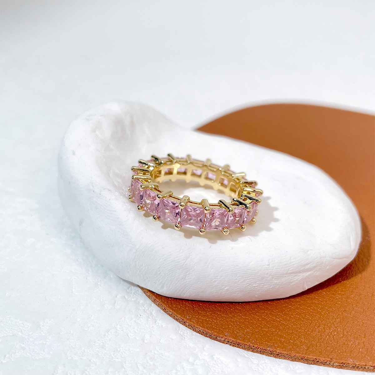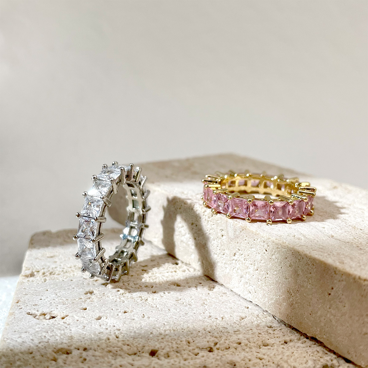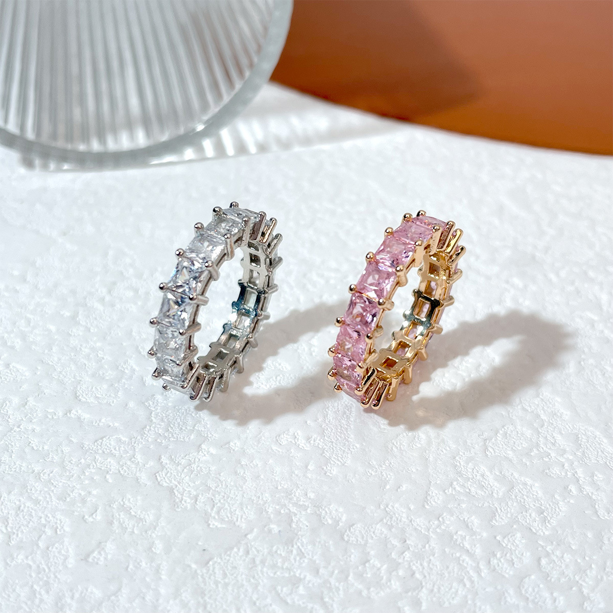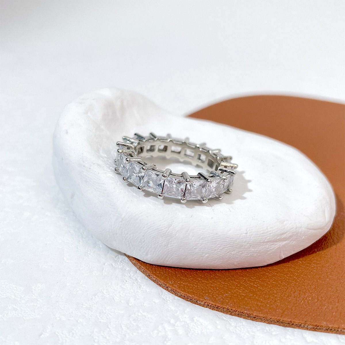 Geometric Copper Ring With Micro Diamond Silver Tone