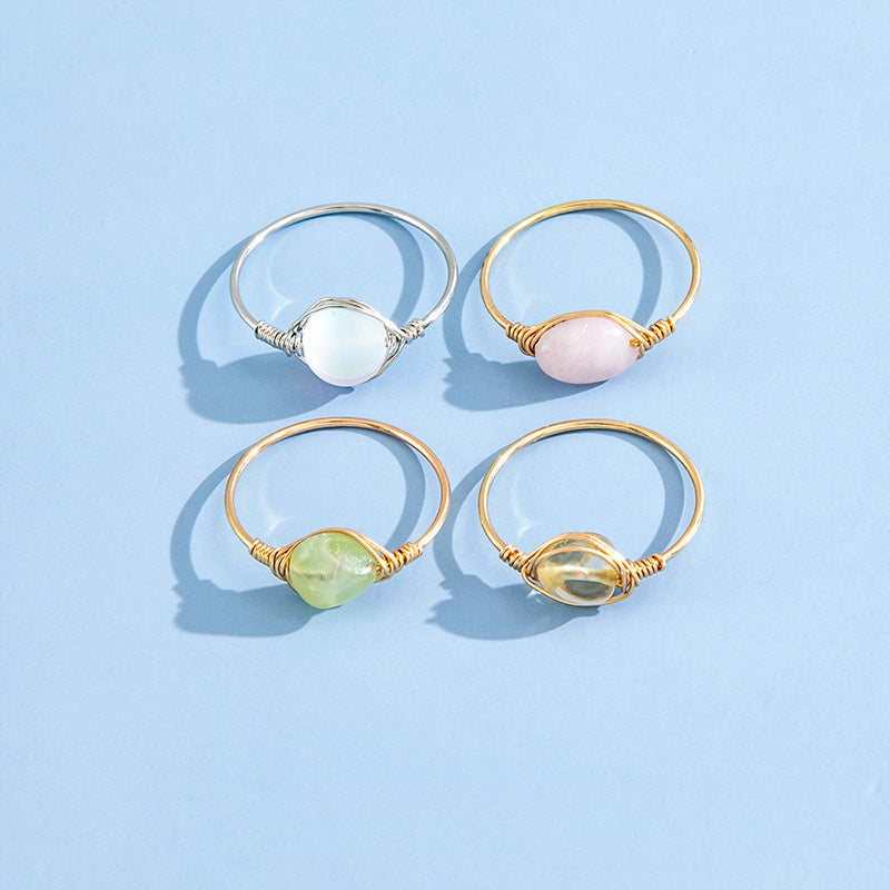 Womens Alloy Ring Set Rhinestones and Artificial Gemstones 4 Piece Jewelry Electroplated Rings For Casual Style