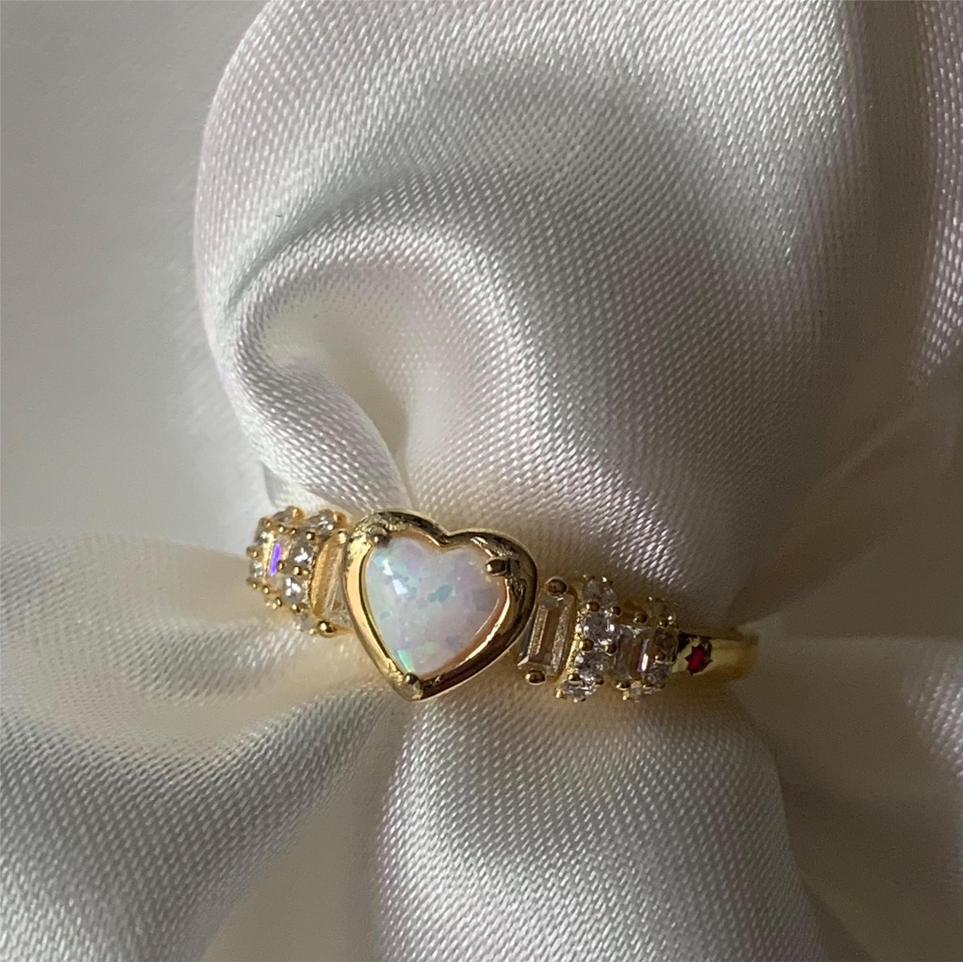 Women's Opal Ring with Zircon Ladies Fashion Copper Ring Elegant Design Blue and White Opal Ring for Her Jewelry Gift Adjustable Ring