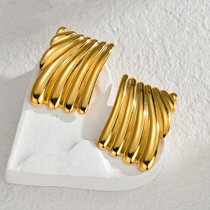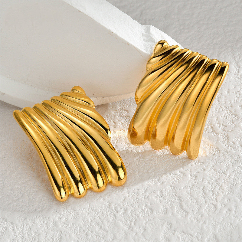 Womens Irregular Geometric Stainless Steel Earrings Retro Fashion Electroplated Studs Durable Accessory For Her