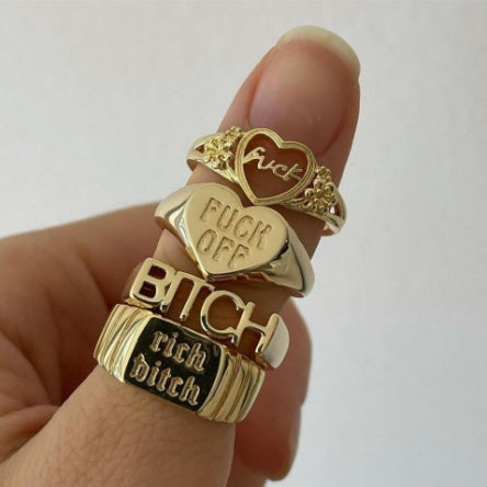 Womens Alloy Heart Ring Set Retro Letter Heart Shaped Rings Electroplated Duo Ring For Women Elegant Gift Idea