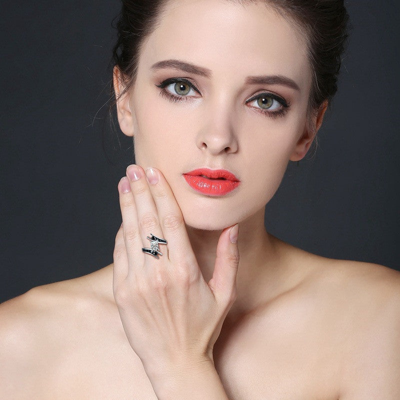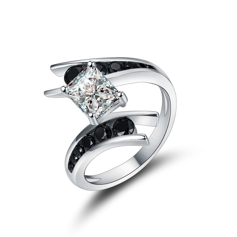 Womens Sterling Silver 925 Ring Geometric Design European Style Jewelry Gift Birthday Wedding Zircon Ring Pack
