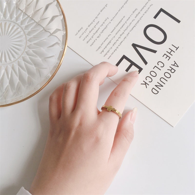 Womens Cross Ring Alloy Electroplated Eternal Letter Design Gold Plated Fashion Jewelry Ring for Women Color Gold