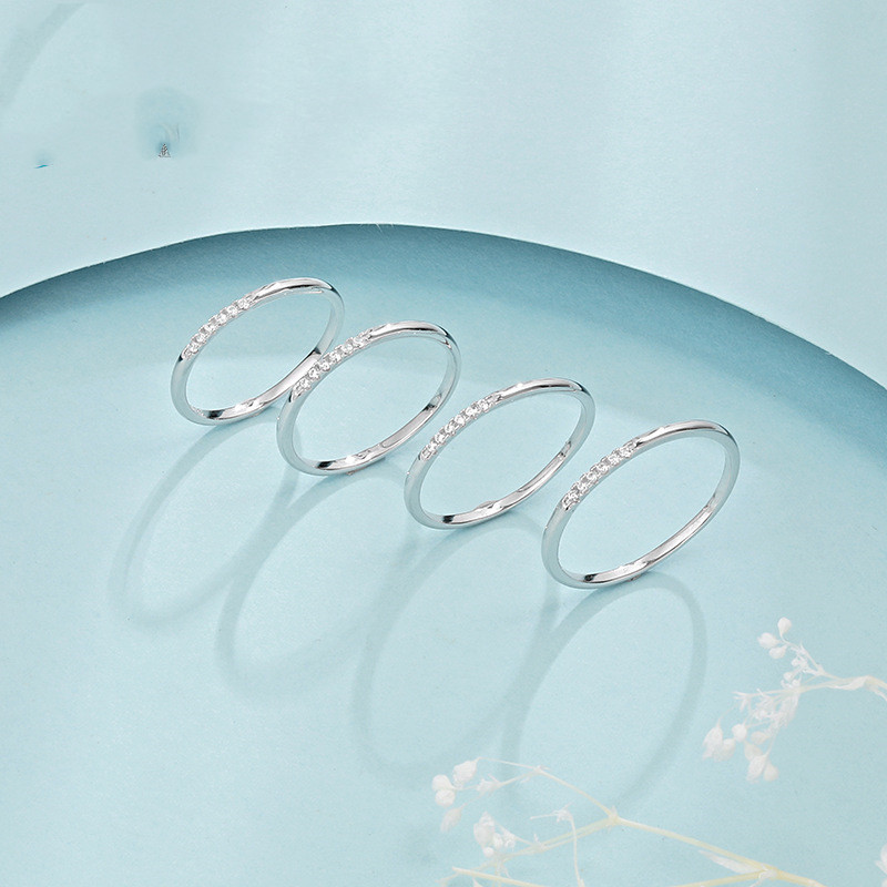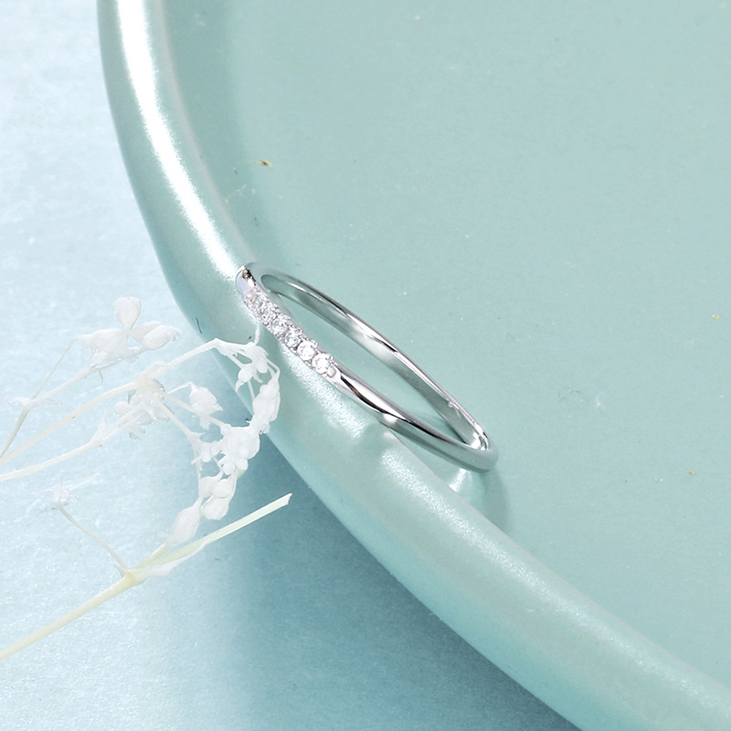 Silver Ring for Women Diamond Accent Electroplated Glossy Finish Dainty Fashion Jewelry for Engagement Gift Idea