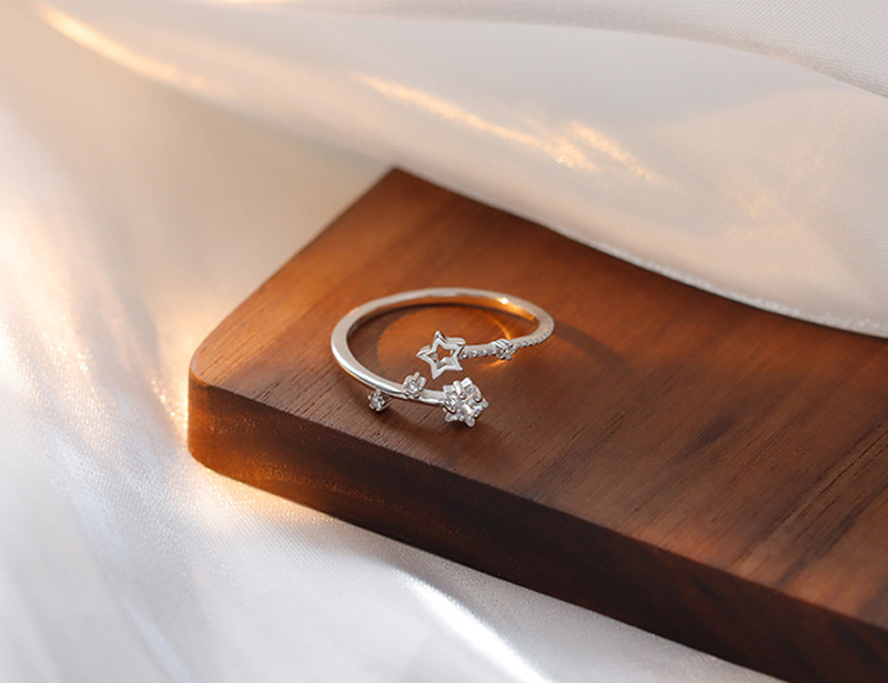 Women Star Ring Adjustable Open Design With Inlaid Zircon Copper Ring 3A Jewelry Gift For Her Star 5mm Shimmer