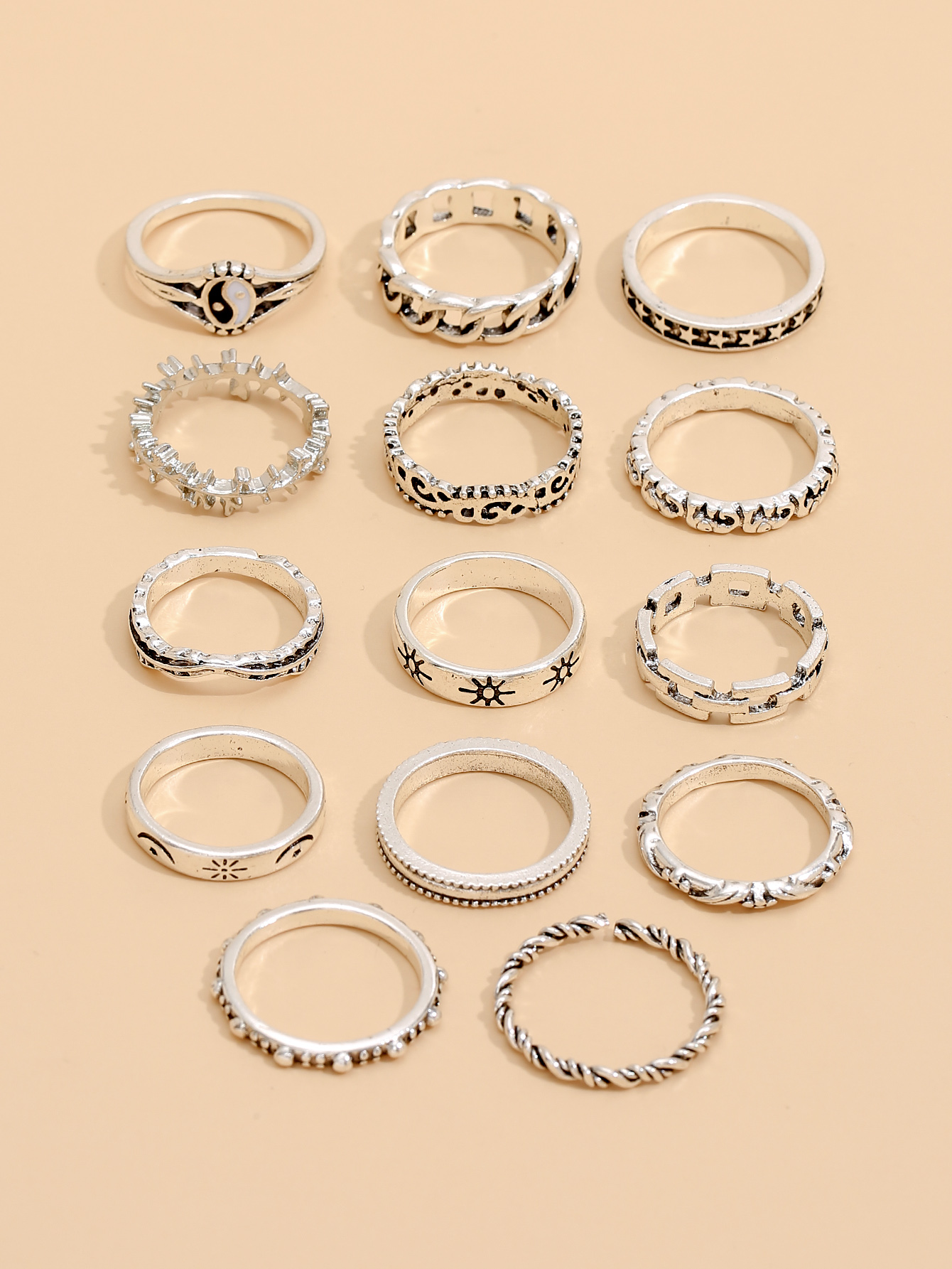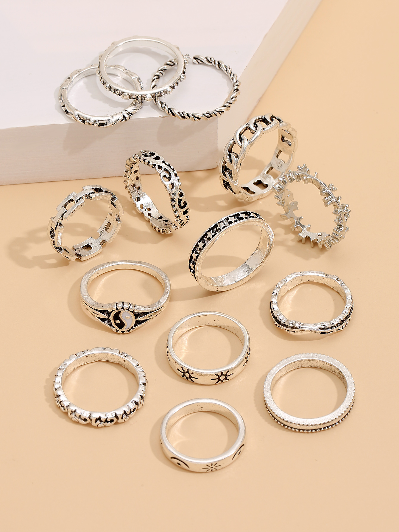 Women Fashion Ring Set Irregular Design Electroplated Zinc Alloy Rings For Everyday Wear Wild Style Everyday Chic