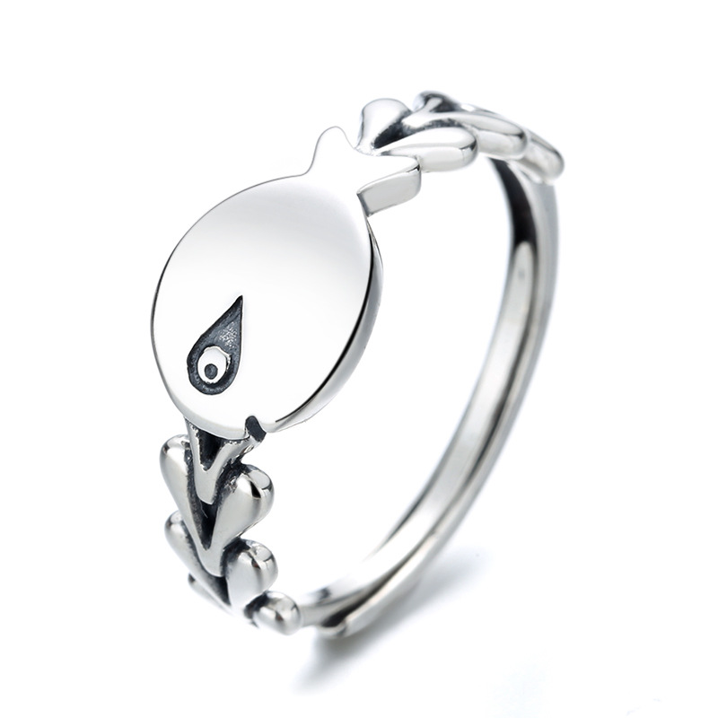 Womens Silver Fish Ring Adjustable Opening Unique Design Face Width 0 9cm Individually Packed Jewelry Gift Box