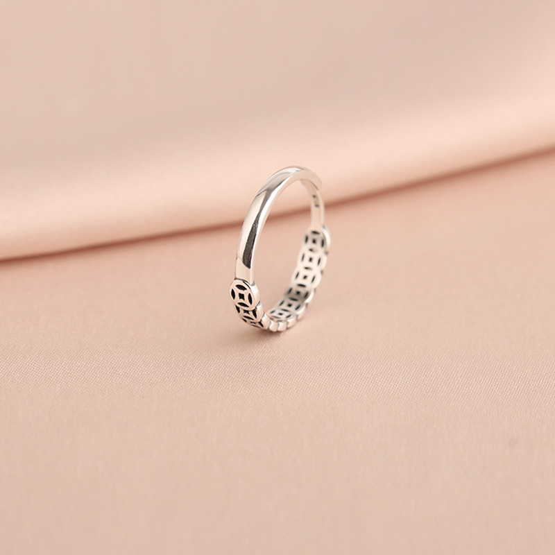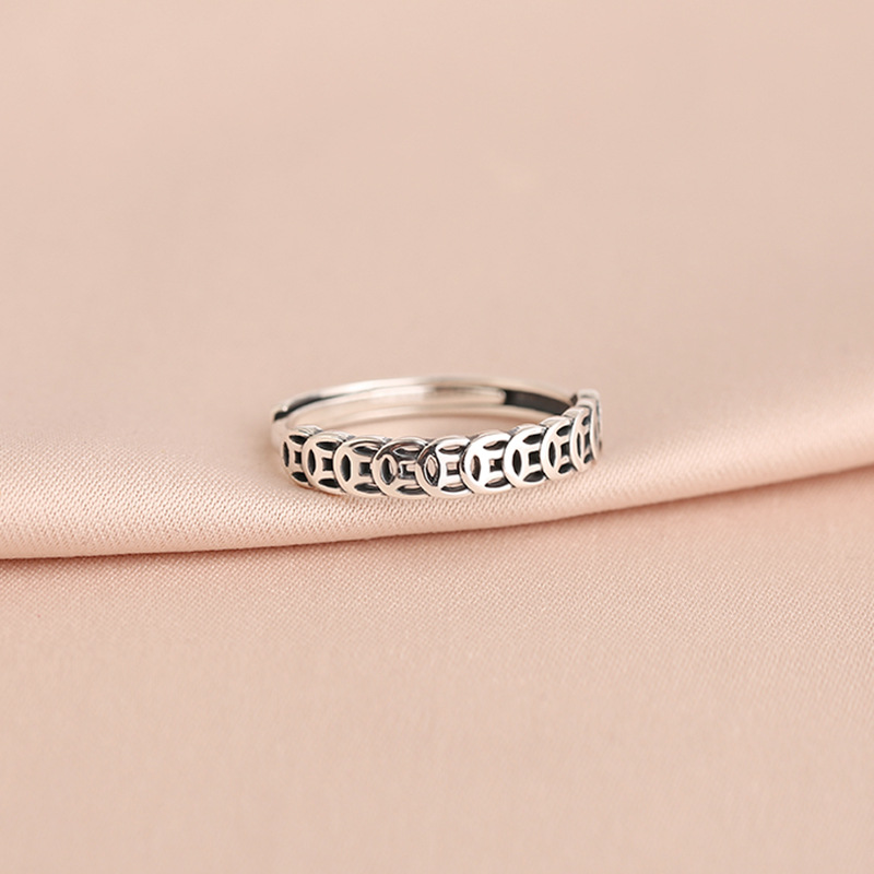 Sterling Silver Lucky Coin Ring Adjustable Opening Zircon Inlay Jewelry For Women Fashion Gift For Her Elegant