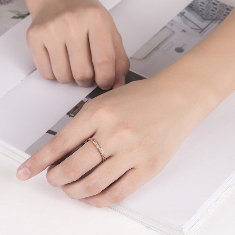 Copper Ring With Single Row Diamond Geometric Design Korean Fashion Ring Individually Packed Jewelry Gift Idea