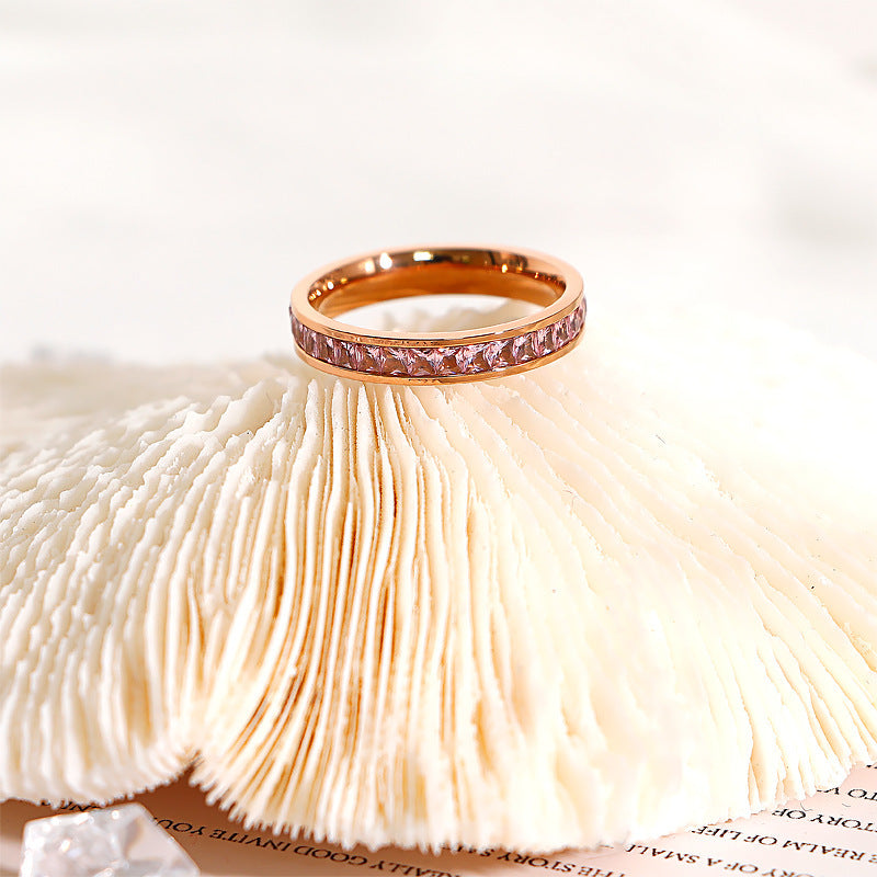 Starry Ring Titanium Steel Diamond Band Elegant Durable Everyday Wear Jewelry Gift For Her Pink Sizes US4 5 6 7