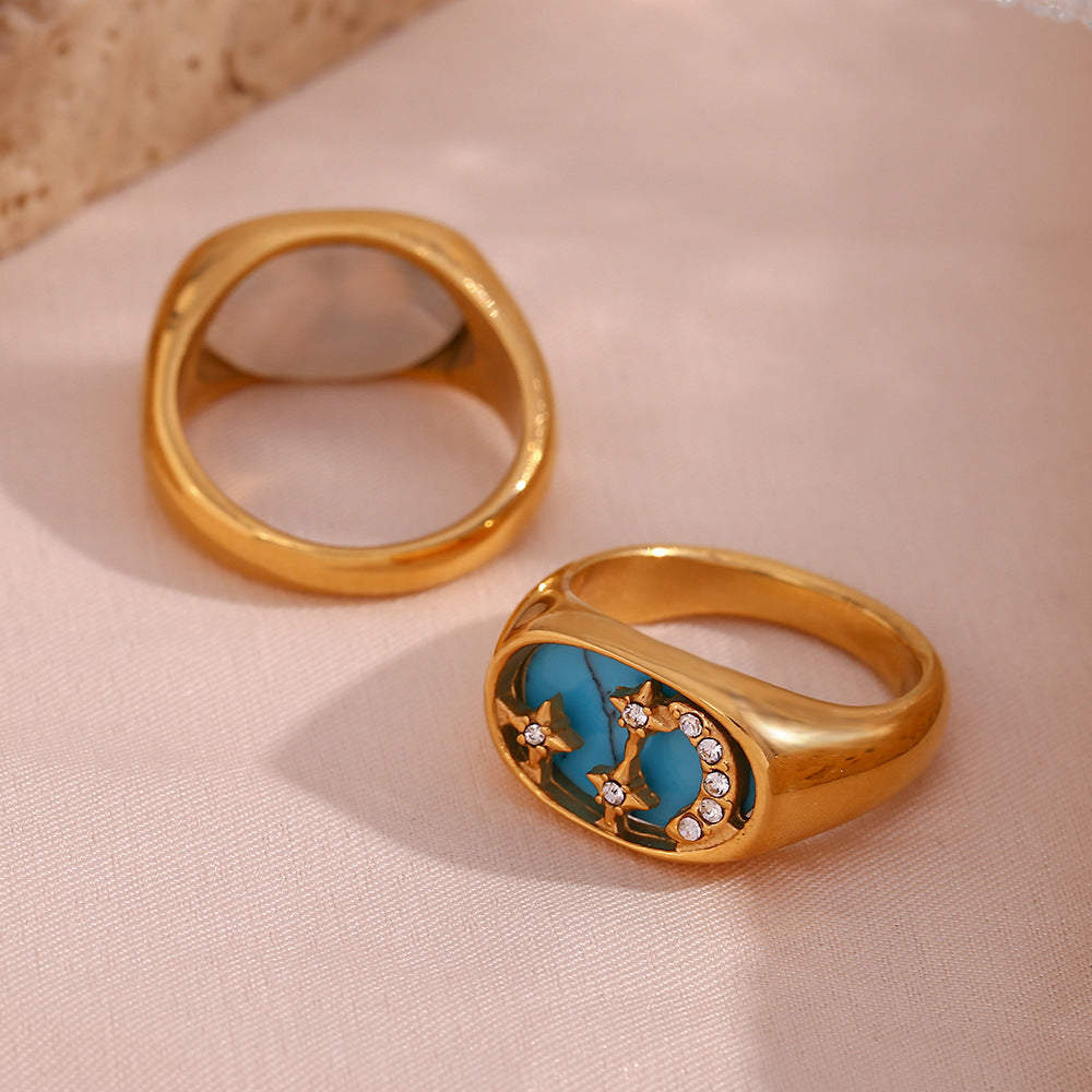 Stainless Steel Ring For Women Moon And Star Design Vintage Oval Signet Jewelry Gift For Her Simple Gleam Gift