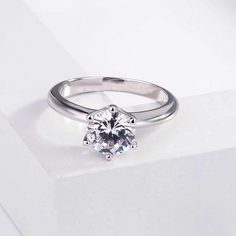 Copper Ring Six Claw Diamond Geometric Lightweight Ring
