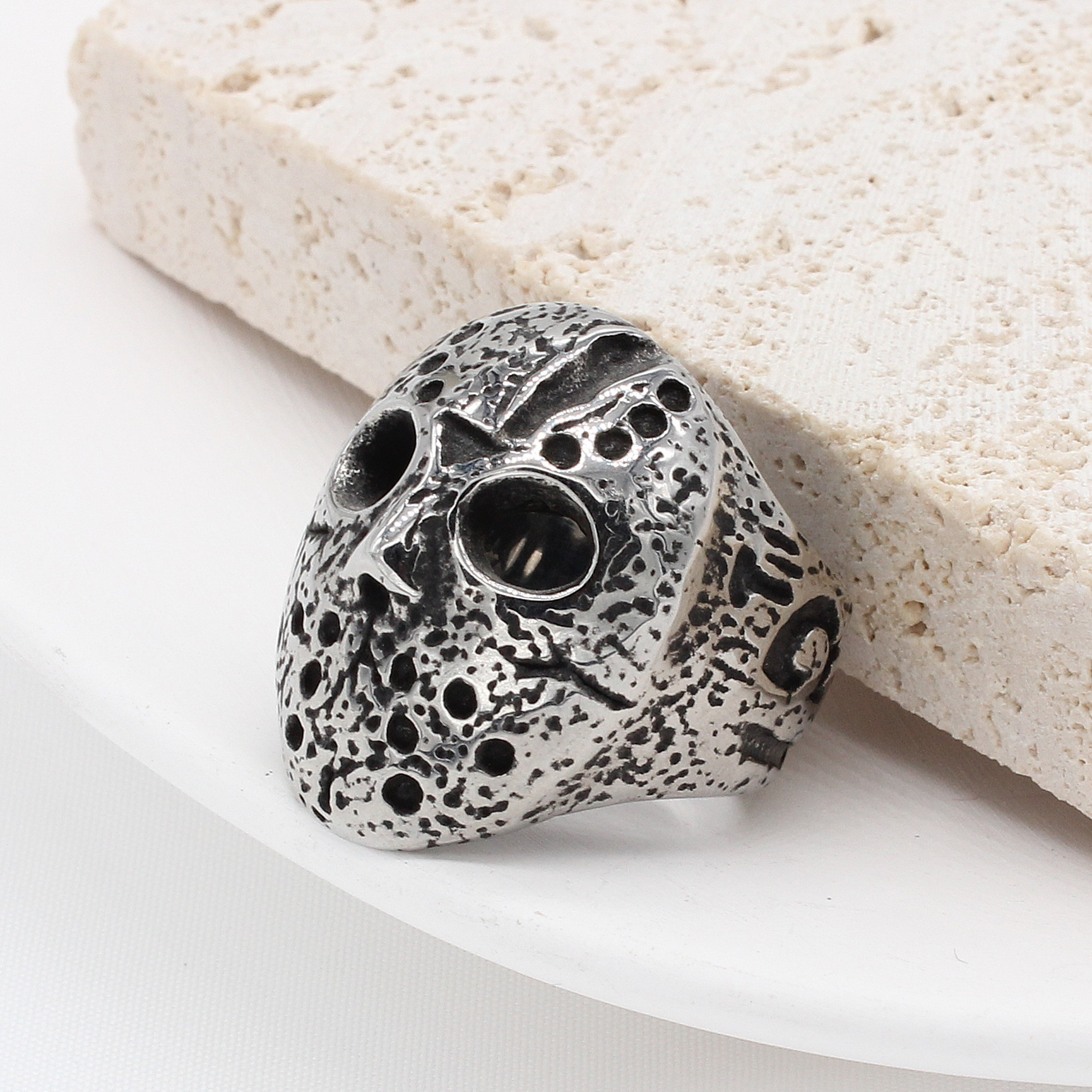 Men's Skull Ring Vintage Titanium Steel Ring Fashion Mask Ring for Men Cool Biker Ring Gothic Punk Rock Ring Statement Jewelry Band Ring