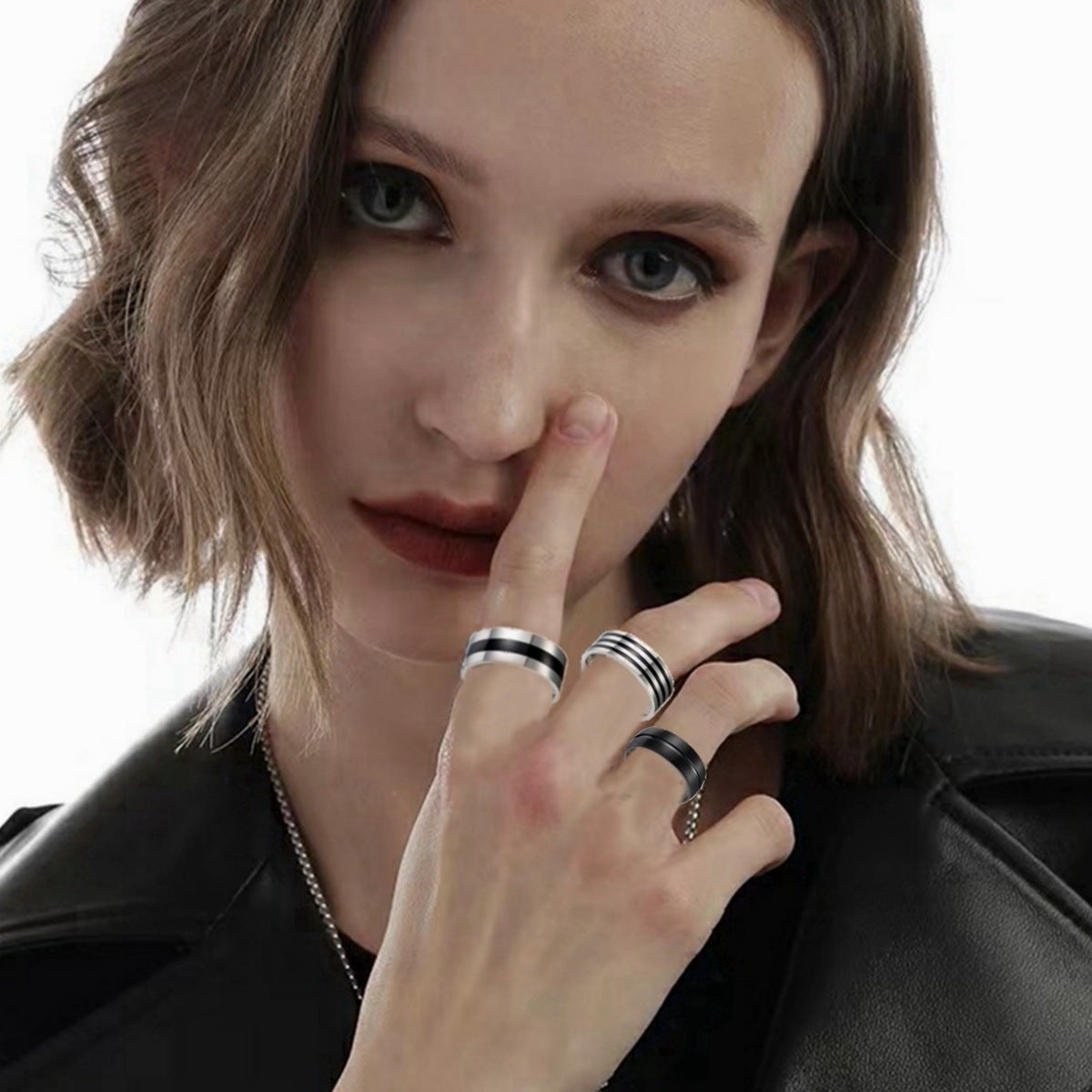 Stainless Steel Oil Dropping Ring Set 8mm Width Electroplated Fashion Accessory Durable Versatile Three Piece Rings