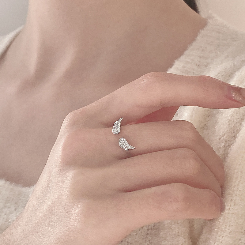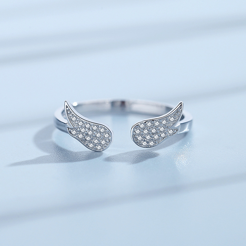 Women 925 Sterling Silver Ring Diamond Angel Wing Korean Drop Style Individually Packed Holiday Gift Elegant Gift Box