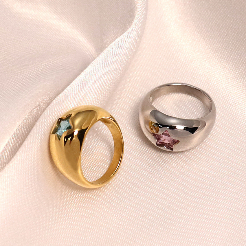 Womens Titanium Steel Gold Ring Pentagram Design Geometric Hexagon Zirconia Micro Inlaid European Fashion Ring