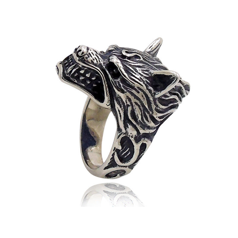 Mens Vintage Wolf Head Ring Giant Animal Style Alloy Silver Finish Statement Ring Antique Silver Toned For Men