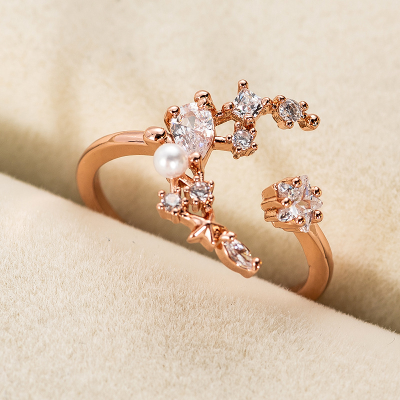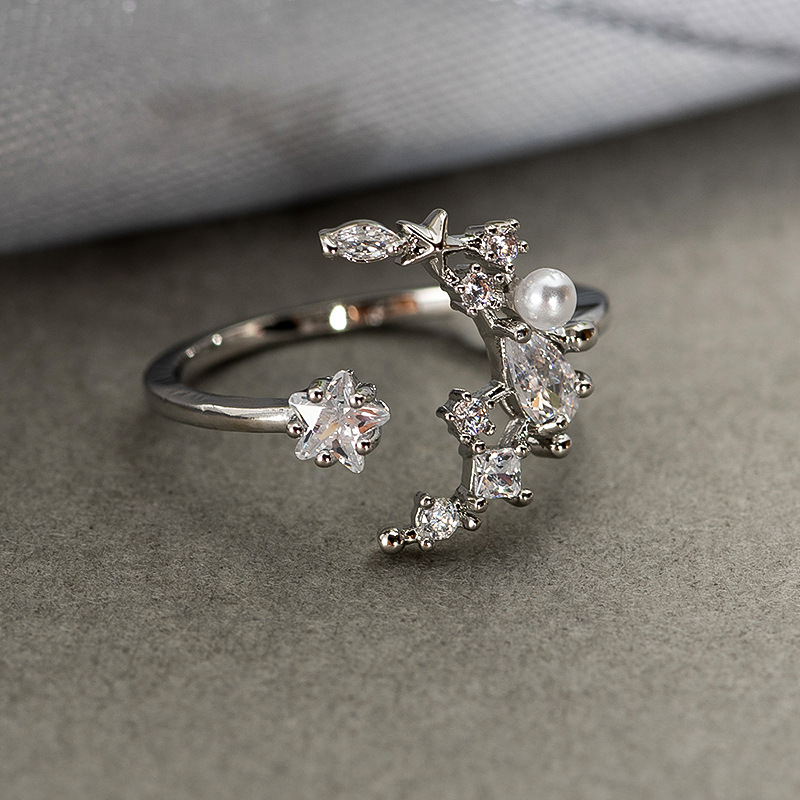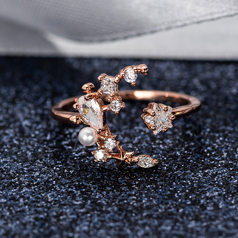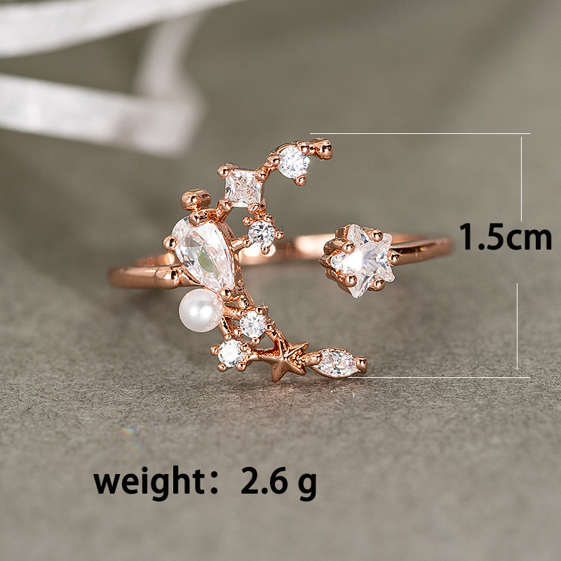 Copper Open Ring With Star And Moon Pentagram Design Gold Plated Adjustable Jewelry For Women With Artificial Gemstones