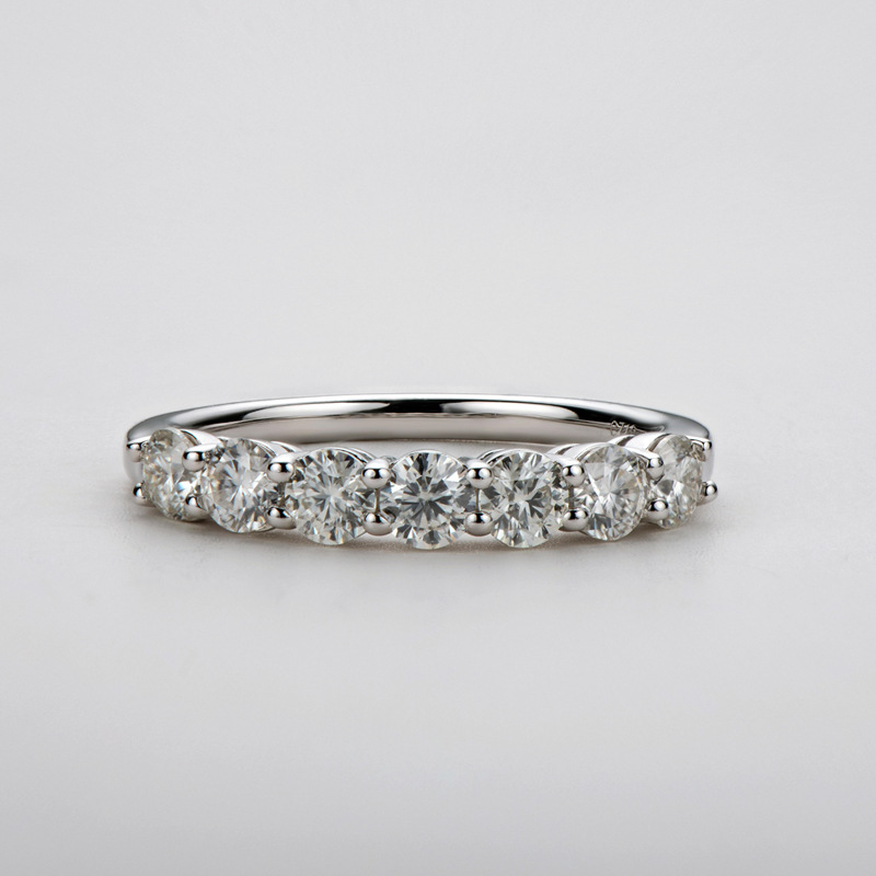 Womens Moissanite Ring White Gold Seven Star Row Ring Fashionable Band Elegant Jewelry Simple Round Ring for Her Anniversary Gift