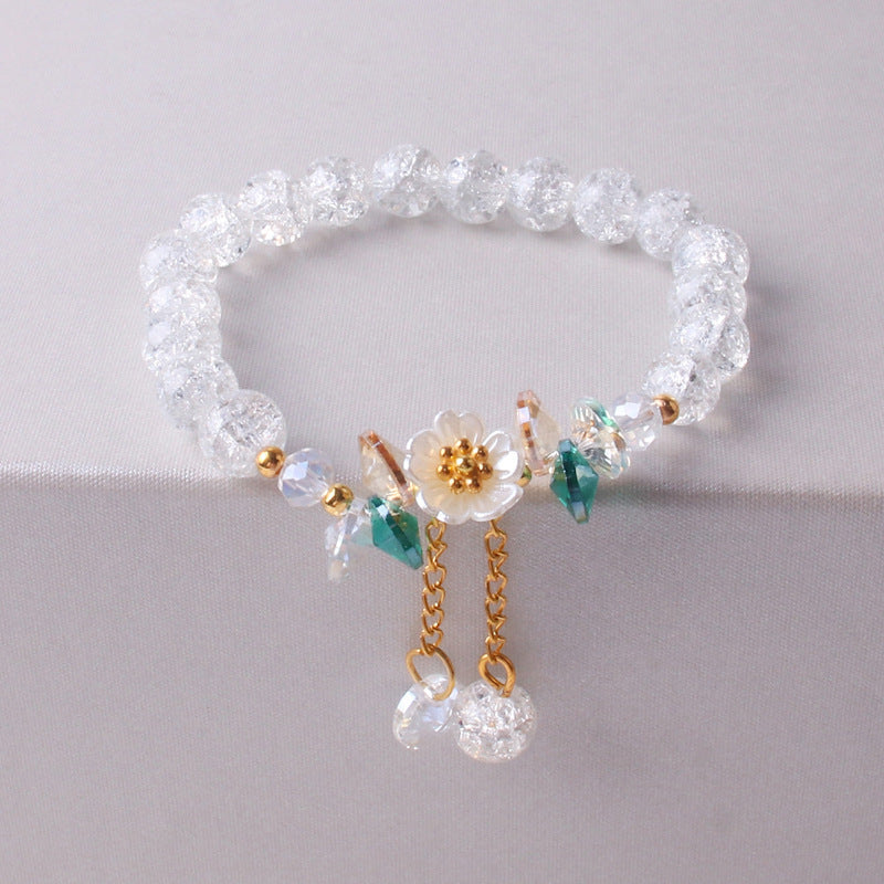 Women Flower Bracelet Colorful Glaze Crystal Pearls Delicate Floral Jewelry For Women And Girls For Daily Wear