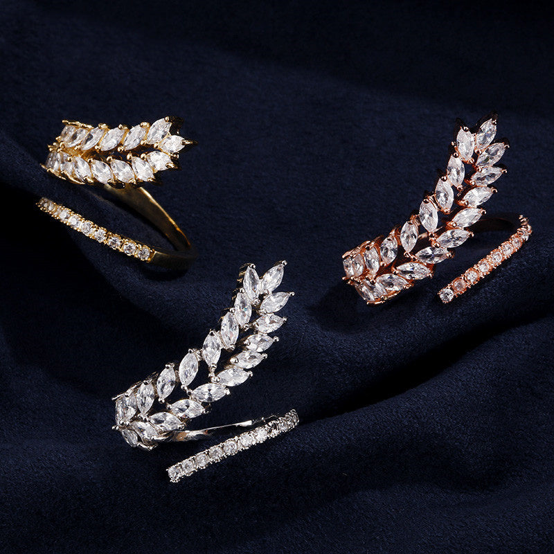 Womens Zircon Inlaid Geometric Copper Gold Plated Ring For Ladies Elegant Everyday Jewelry Accessory Spark Joy