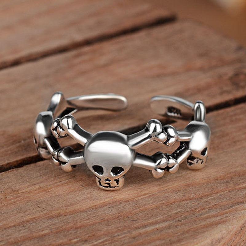 Unisex Adjustable Skull Ring Geometric Copper With Thai Silver Electroplating Individually Packed In Gift Boxed