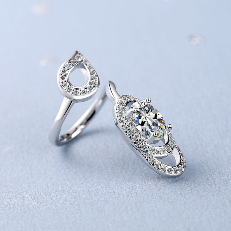 Womens Diamond Open Ring Copper Adjustable Geometric Design Fashion Jewelry Statement Piece For Her Bold Shine