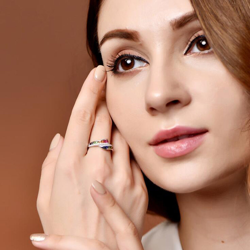 Geometric Alloy Ring With White Gold Electroplating Inlaid Gemstones European Fashion Jewelry For Women Mosaic Gemstones