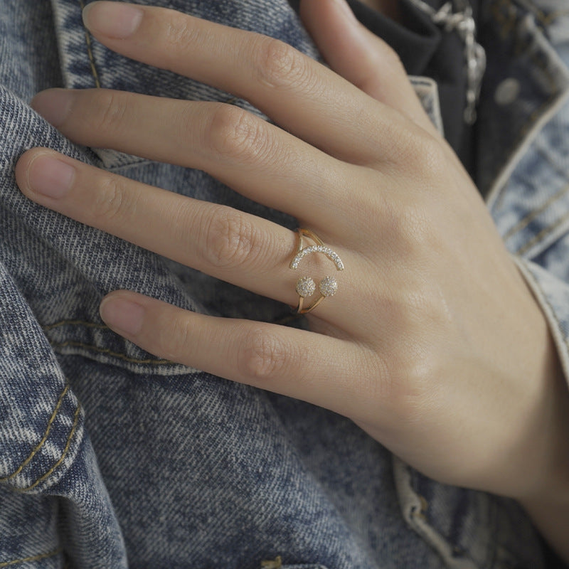 Womens Adjustable Copper Ring with Geometric Zircon Inlay
