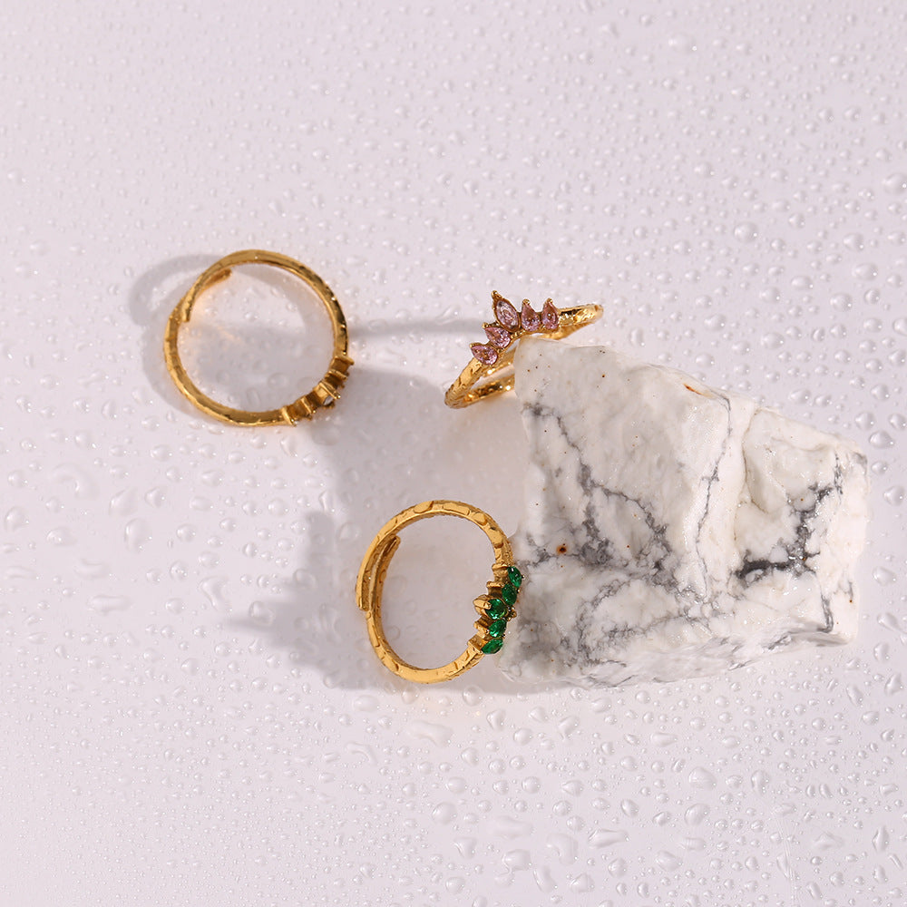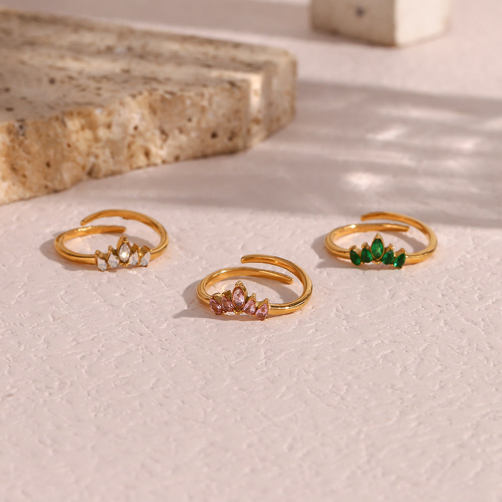 Womens Adjustable Stainless Steel Ring Leaves Diamond