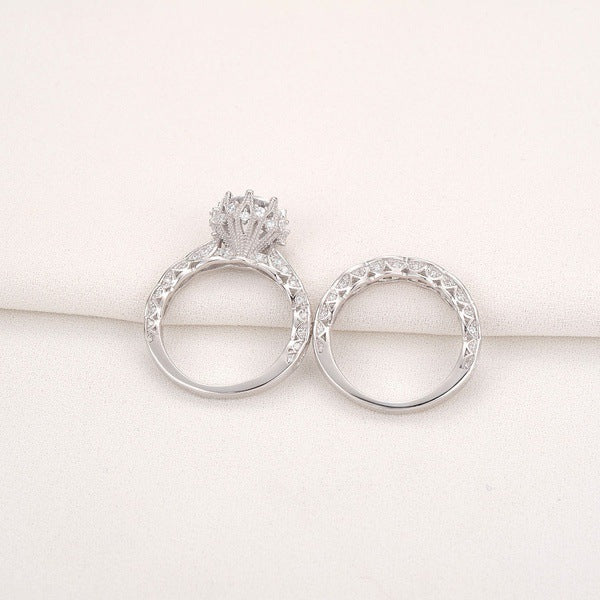 Couple Rings Set Gold Plated Alloy Bands Round Engagement Rings For Women And Men Wedding Bands Gemstone Shine