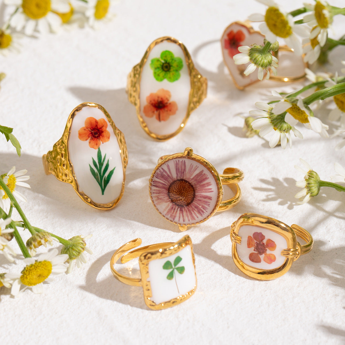 Women's Stainless Steel Flower Ring Adjustable Opening Electroplated Durable Fashion Jewelry Accessory For Her