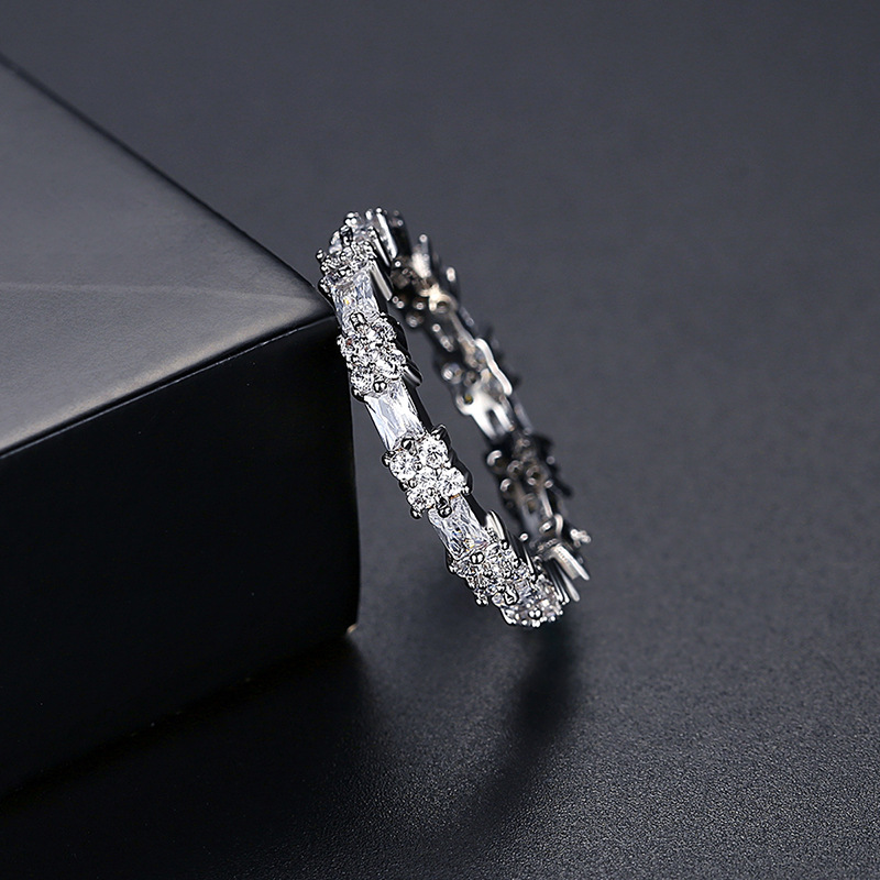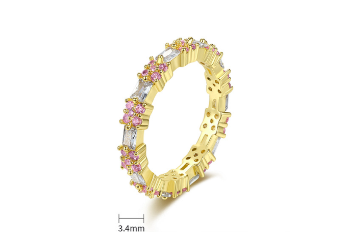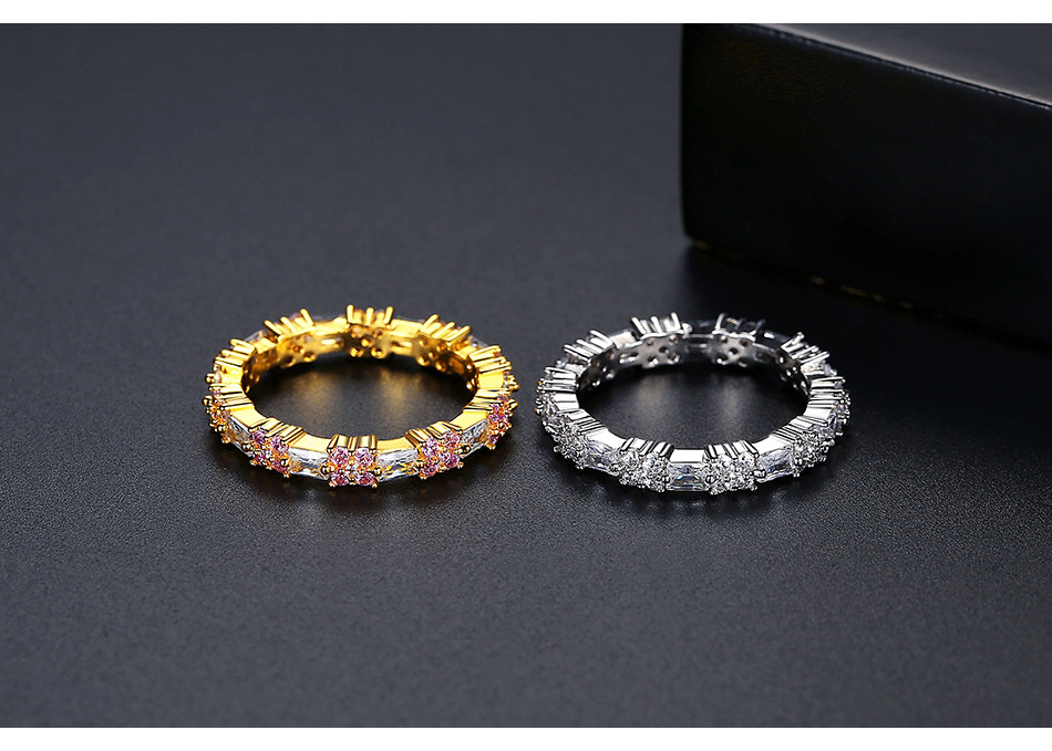 Womens Flower Zircon Inlaid Copper Plated Geometric Fashion Ring For Everyday Wear High Quality Durable Elegant Ring