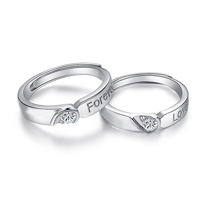 Couple Heart Shaped Matching Rings Diamond Sterling Silver Promise Engagement Anniversary Jewelry Gift Box Set