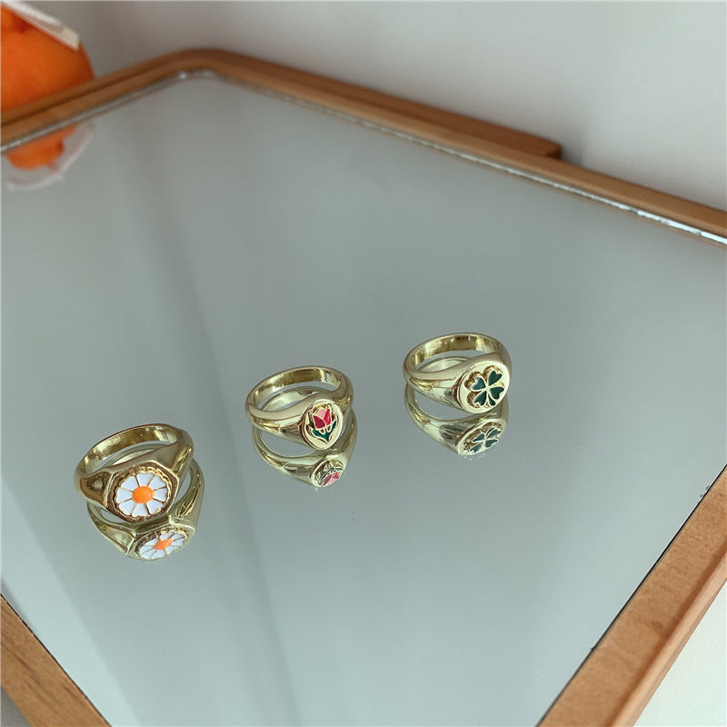 Womens Four Leaf Clover Ring Alloy Geometric Fashion Jewelry Durable Gift For Birthday Trendy Accessory Plated