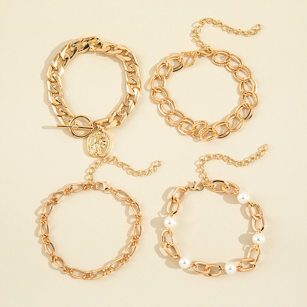 Womens Bracelets Set Four Piece Geometric Pearl Alloy Bracelet Elegant Fashionable Design for Everyday Wear X1