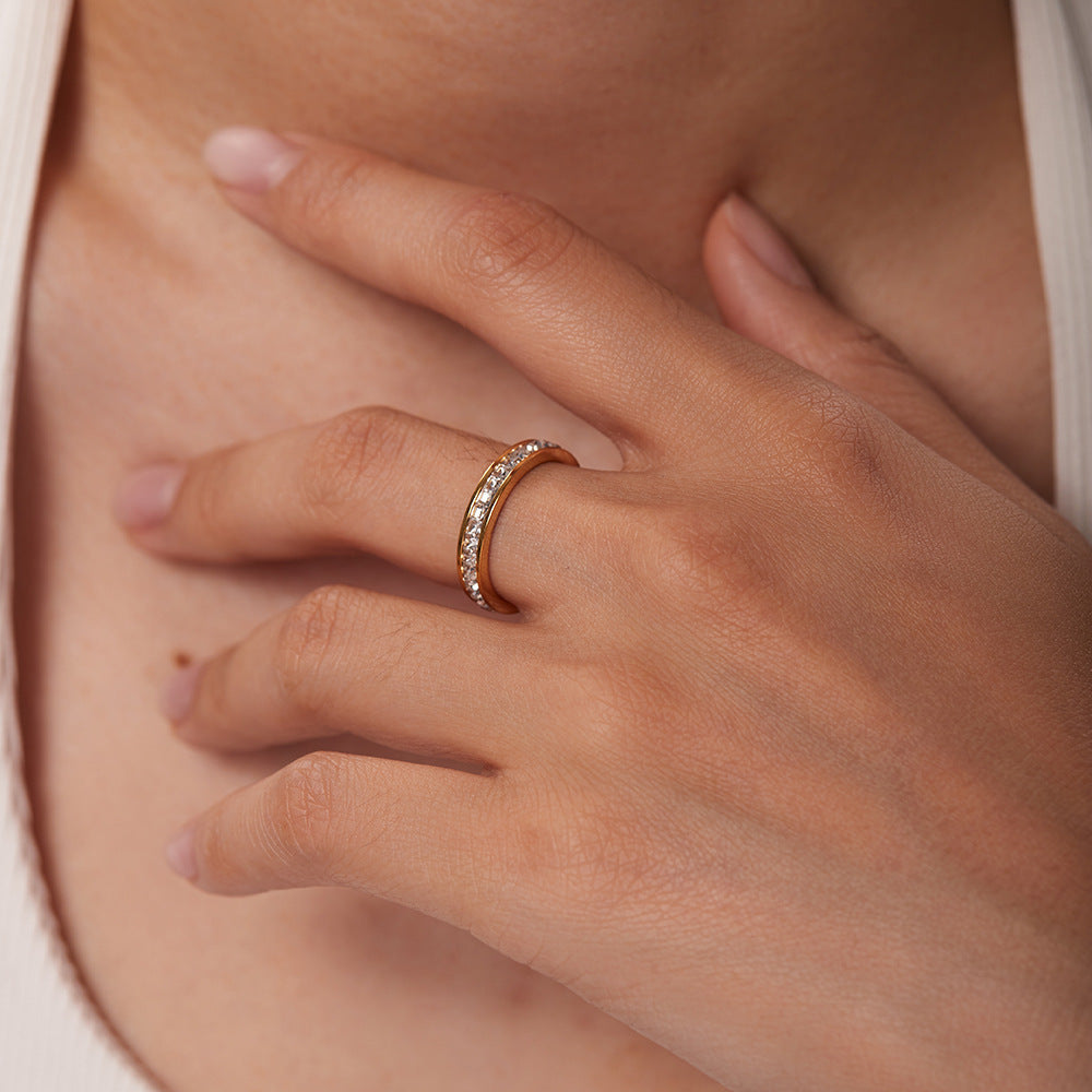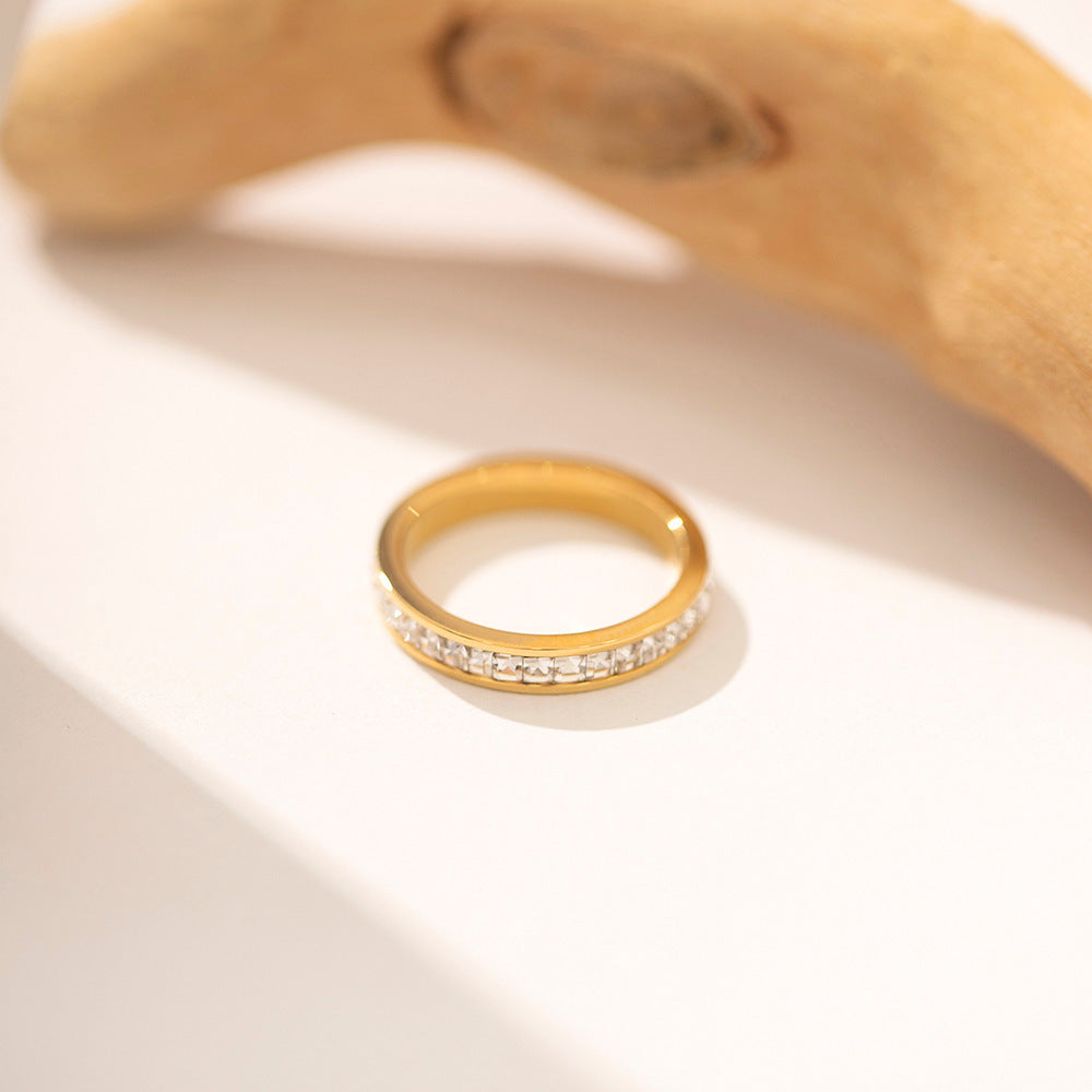Retro Ring Single Diamond Ring Inlaid Zircon Ring Stainless Steel Ring Geometry Ring for Women and Girls Fashion Jewelry Gift Present