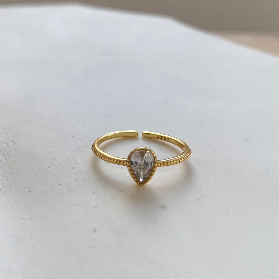 Women 925 Sterling Silver Bead Ring Mesh Ring Chain Ring Water Drop Zircon Diamonds Jewelry for Women Timeless