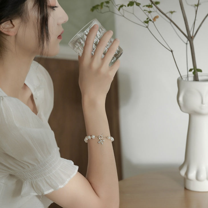 Womens Pearl Bracelet Zircon Bee Pendant Elegant Freshwater Jewelry Animal Zodiac Gold Plated Inlaid Gems Luxe