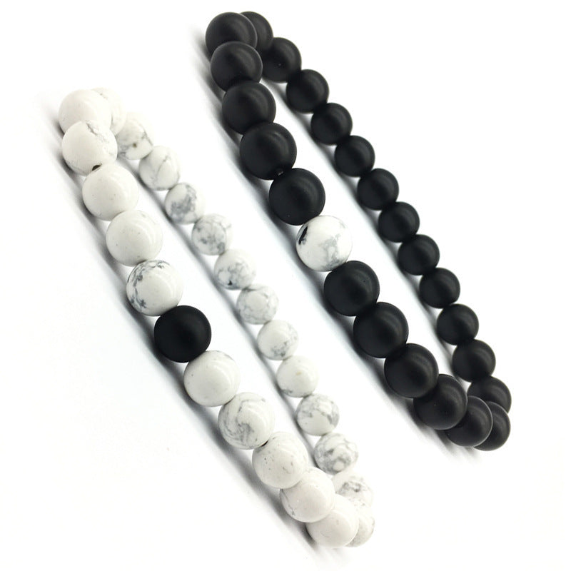 Couple Geometric Bead Bracelets Set 8mm Frosted Stone White Turquoise Matte Black 18cm Friendship Jewelry 18cm