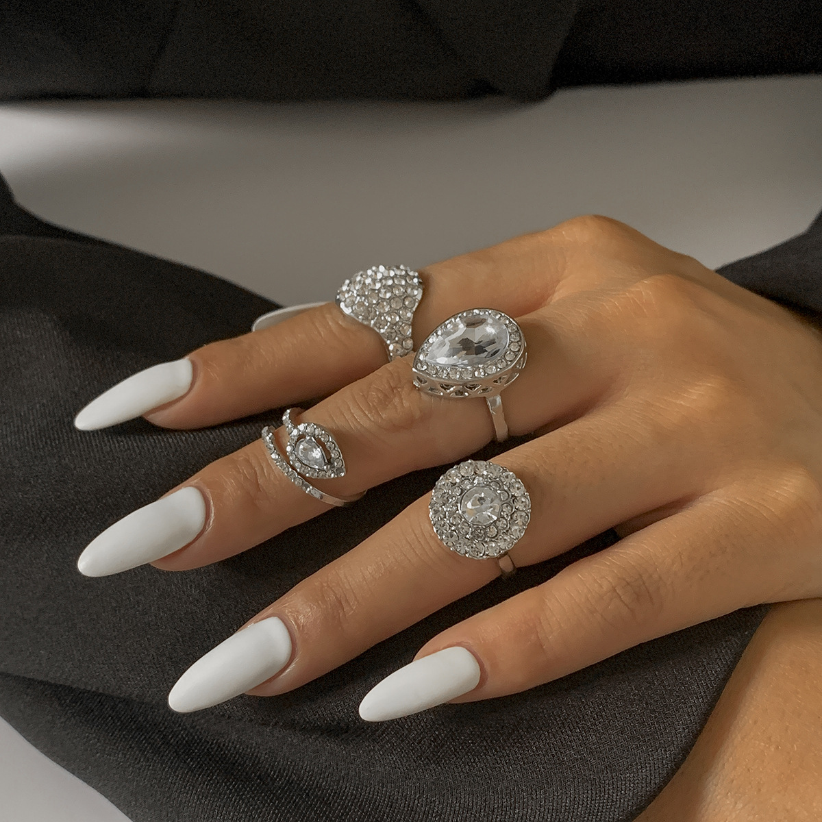 Womens Adjustable Knuckle Ring Geometric Gemstone Alloy Rhinestone Durable Elegant Modern Fashion Jewelry Gleaming