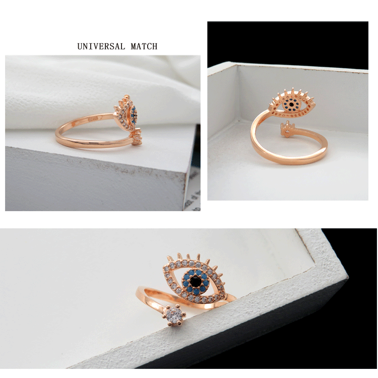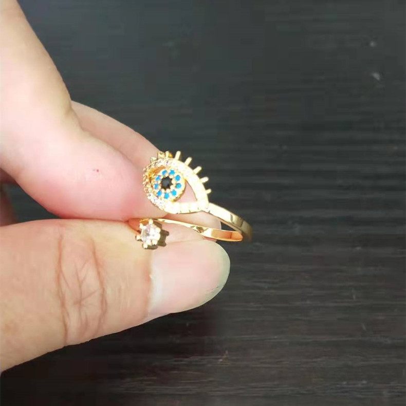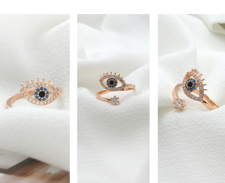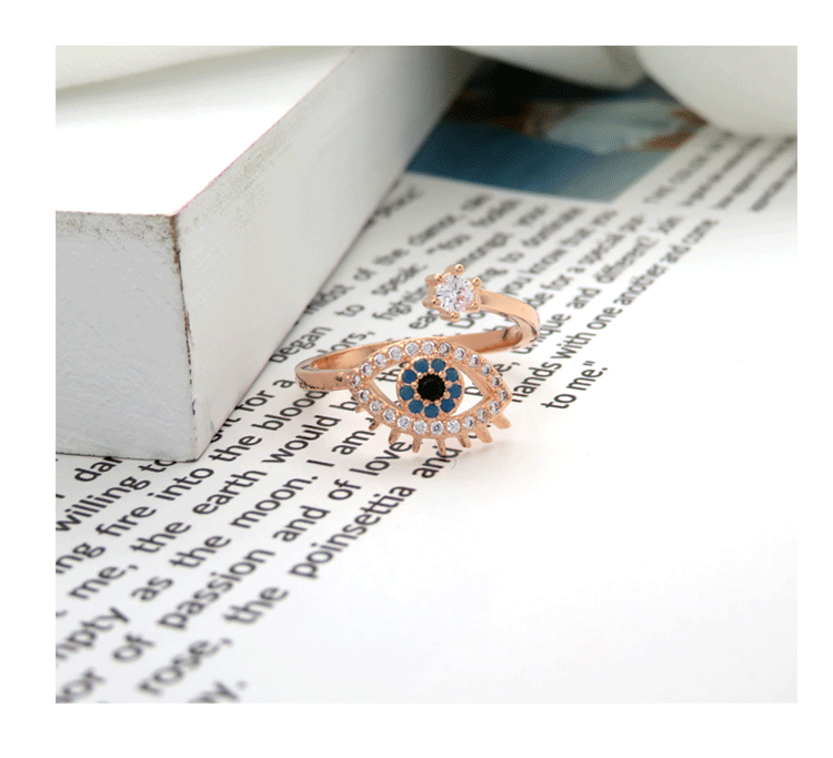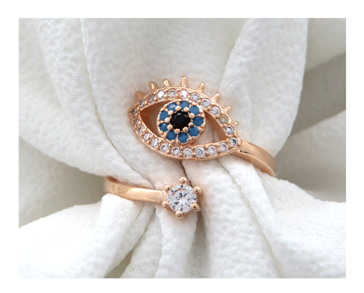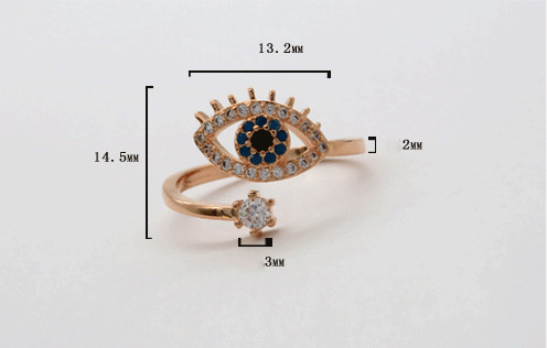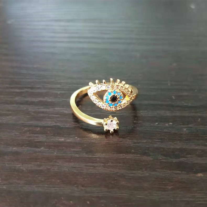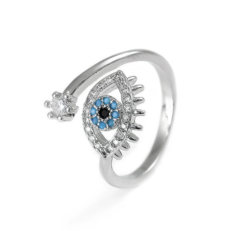 Eye Design Ring with Blue Eyes Copper Plated Unique Statement Jewelry Sturdy Elegant Accessory for Her Fashion