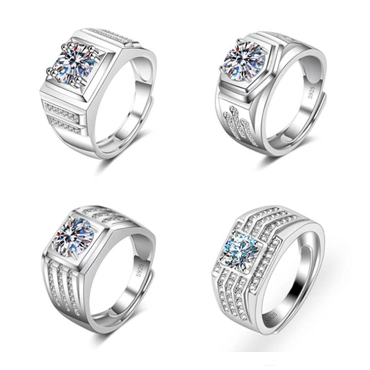 Mens Adjustable Copper Ring With Diamond Design Starry Sky Elements Korean Fashion Ring Jewelry Gift For Him Everyday