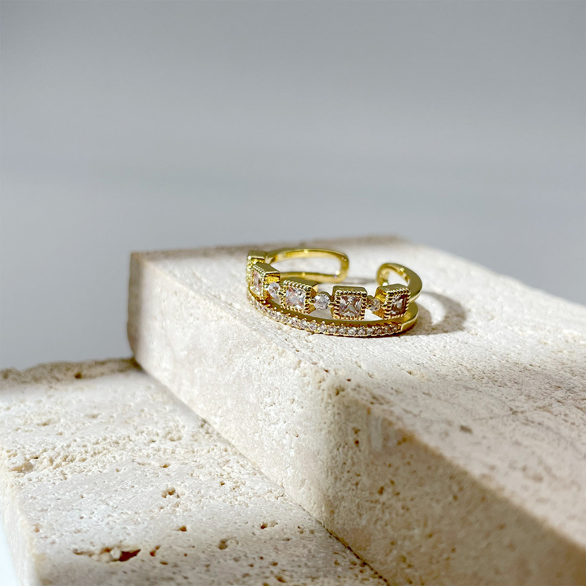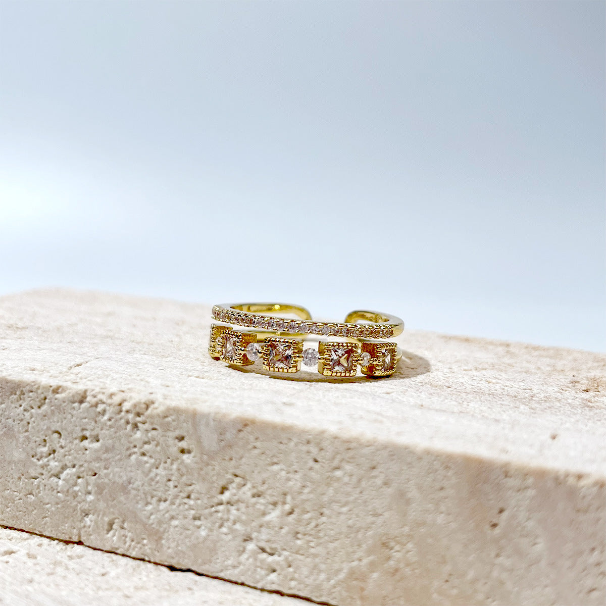 Womens Adjustable Diamond Zircon Ring In Rose Gold Copper Plated 18K Fashion Jewelry For Special Occasion Gem.