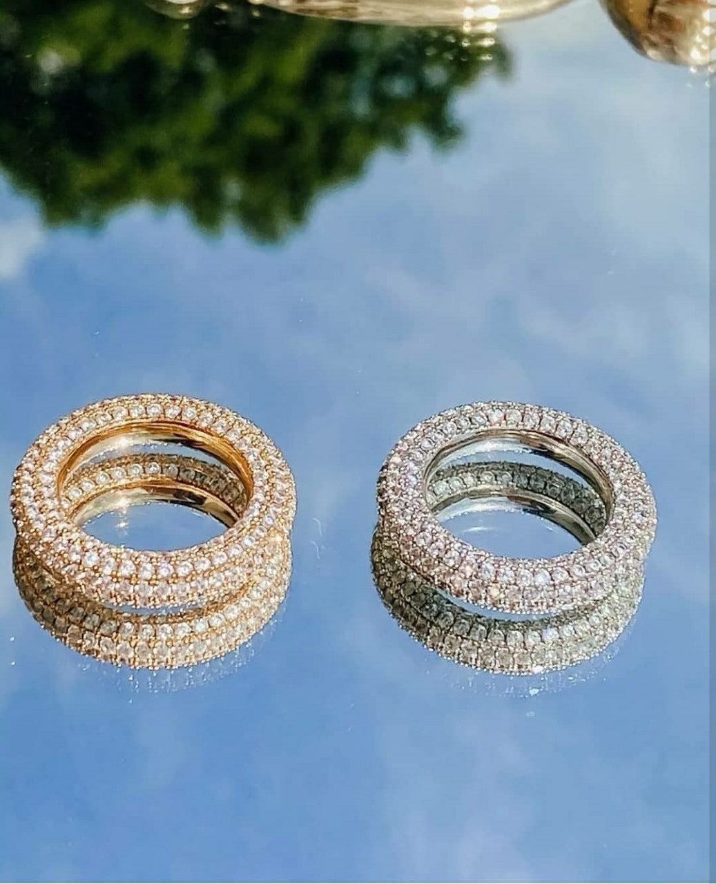Women's Trendy Ring with Full Rhinestone Zircon Micro Inlay for Fashion Jewelry Statement or Elegant Gift for Her Gold or Platinum Finish