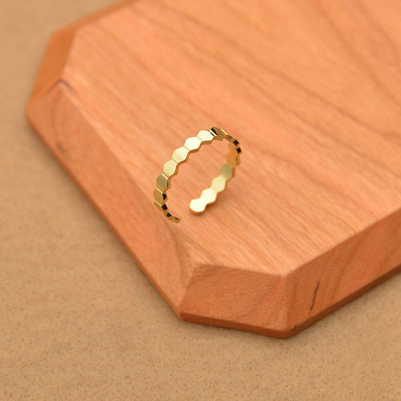 Womens Stainless Steel Ring 18K Gold Tone Adjustable Geometric Vintage Design Fashion Jewelry Durable Everyday Wear