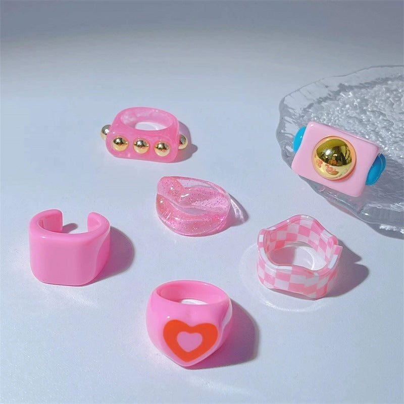 Resin Ring With Geometric Diamond Inlay Natural Adjustable Length Jewelry Gift For Women And Girls Chic Design
