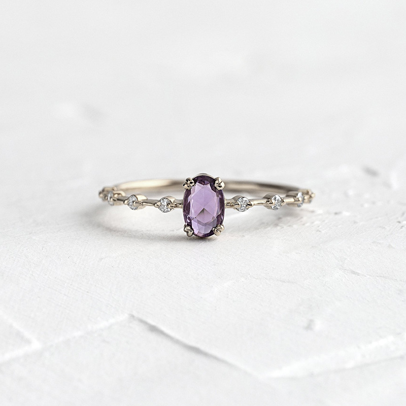 Purple Zircon Geometric Copper Rings Inspired By Japanese Design Electroplated For Women Birthday Gifts Jewelry