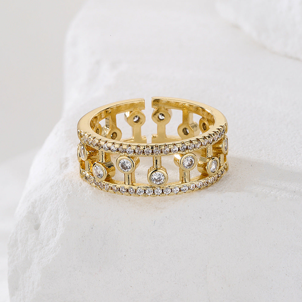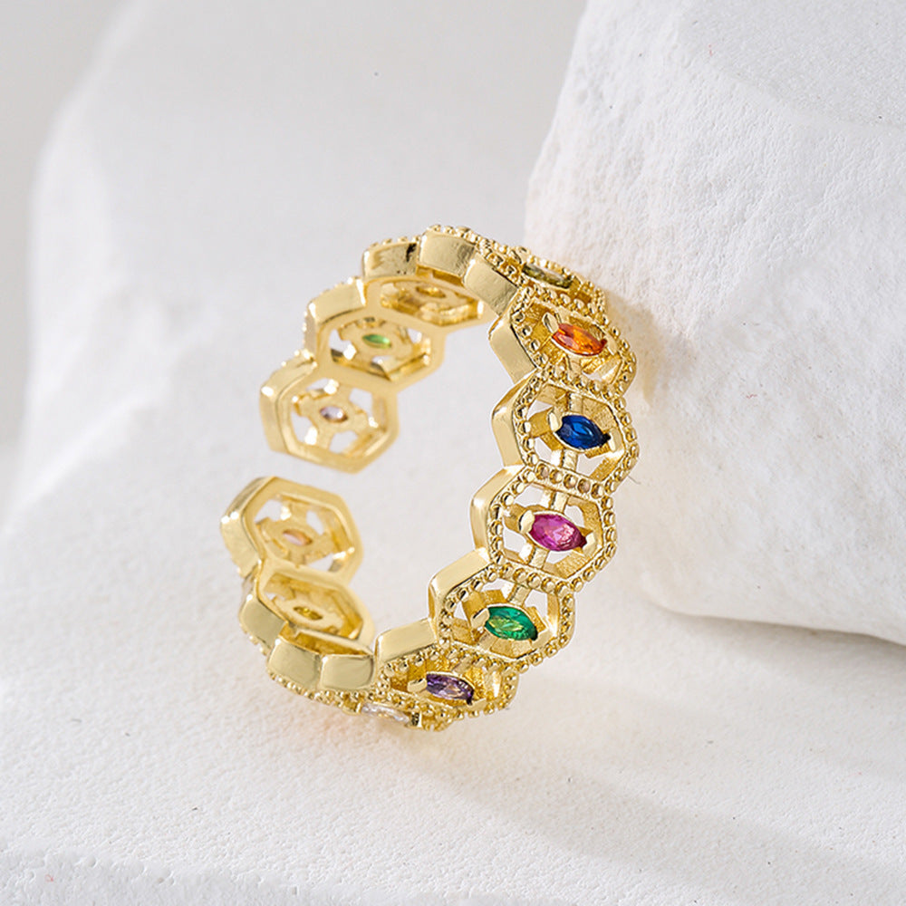 Womens Geometric 18K Gold Plated Copper Ring Abstract Design Jewelry Fashion Statement Beautiful Modern Accent